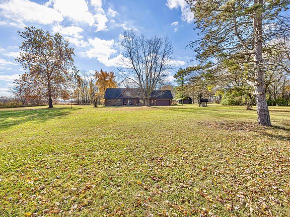 Are you searching for that perfect setting for your forever home? This could be just what you're looking for!! This nice, four bedroom, 2.5 bath home is situated on a 5 acre lot with plenty of yard for an additional outbuilding, swing set, games and more, yet bordered by beautiful trees for extra privacy. The master bedroom and an additional bedroom are on the main level, with two additional bedrooms on the second level with spacious landing and walk out deck to enjoy the view! One full bath down; one and one-half bath up. The living room is exceptional large with a beautiful, full wall brick fireplace. There is a separate dining area. Walk out the rear door to a covered patio area for enjoying the outside! There is a two car, attached garage, along with an additional, one car detached garage (20x24) for extra storage. For those wanting a basement or place of safety during storms, there is a perfect crawl space...just the right size for the whole family and very deep. Drone and inside pictures coming soon!