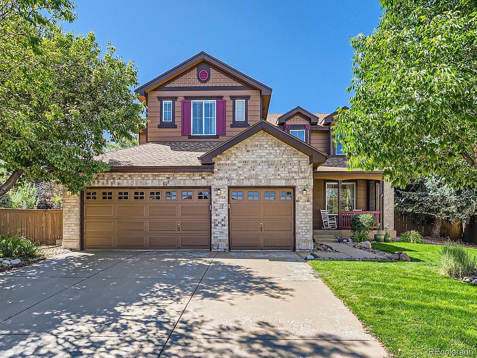 Check out this great opportunity to own an updated home with a HUGE backyard in sought-after Highlands Ranch! This home's flexible floor plan provides 5 bedrooms, 5 bathrooms, a loft, AND a finished basement for expanded living space. A welcoming front porch, 3-car garage, and manicured landscaping give this home wonderful curb appeal! Gleaming hardwood flooring, new plush carpet, and soaring vaulted ceilings with walls of windows enhance the spacious main living areas. A main floor bedroom and full bathroom provide a convenient solution for guests or an office space. You'll love the open kitchen, with an oversized custom island, stainless steel appliances, and tons of cabinet space. Venture upstairs to discover four more bedrooms, including the generous sized master with unique architectural features and an updated en-suite bathroom! Three more nice sized bedrooms share two more full bathrooms on the upper level. As a bonus, there is a cozy loft area that is perfect for a craft room, additional small office/homework space, or toy room for kids. Downstairs you'll find the finished basement, with a generous flex space, wet bar and another bathroom - a great solution for a media area, workout space, a kids' playroom, or whatever suits your needs! Step through the brand new French doors to find one of the home's most desirable features - the gigantic back yard, featuring a custom covered patio with drapes and retractable shades, as well as an included hot tub, providing great options for entertaining, outdoor activities, or just relaxing. The garage provides space for 3 cars, plus a custom indoor/outdoor dog run. This home has been meticulously maintained and thoughtfully updated by the original owners. There is nothing left for you to do but move in and enjoy calling it your own! MUST SEE!