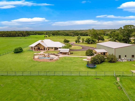 A rare and remarkable opportunity awaits just minutes from Texas A&M and Kyle Field—this 112-acre ranch is a picturesque retreat that seamlessly blends functionality with charm. At the heart of the estate is a stately 3,312 SF main residence, offering 5 bedrooms and 4.5 baths with resort style pool. Nearby, a beautifully designed 4,800 SF barndo provides additional living space with a full kitchen, wet bar, along with two bedrooms and 2.5 baths. Thoughtfully designed for both comfort and functionality, the property includes 15 small sheds for animal breeding, a 30x50 equipment barn, and a 40x40 horse barn. Equestrian enthusiasts will delight in the round pen and riding arena. Water features include 1-acre stocked pond complete with an aluminum dock for peaceful fishing moments and Ferrill Branch Creek meanders through the back wooded section of the property. The ranch is fully enclosed by an 8-ft galvanized high fence with a 4-ft varmint wire and hot wire. Adjacent 314 acres for sale.