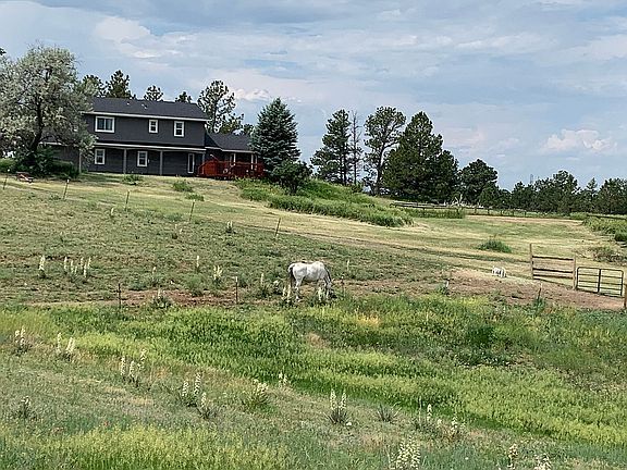 Ten Acre horse property located in NW Parker area. Multiple fenced pastures allow for grazing and frolicking. The home boasts four bedrooms, an office, three bathrooms, laundry room. Gas heat and air conditioning, no covenants. Unfinished basement, newer kitchen appliances, new (2020) triple pane insulated windows, wood burning fireplace and a barn with 7 stalls (each with paddock). 100' x 75' outdoor arena with year-round footing. The property sits on top of a hill with great City and Mountain views, visible from a wraparound deck.