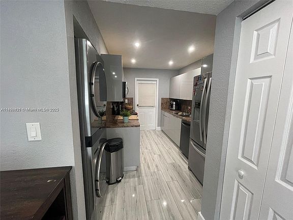Beautiful first floor apartment located in the desired area of Hialeah Gardens! Features include tile floors, zebra blinds, remodeled bathrooms, stainless steel appliances, recessed lightening, impact windows, built out closets in the bedrooms, 2022 a/c & water heater and more. Tiled backyard has a terrace and includes a shed for additional storage. Washer, dryer and refrigerator in the pictures were swapped for other appliances. Pet under 20 pounds permitted with $250 refundable deposit. Two assigned parking spaces and guest parking!
