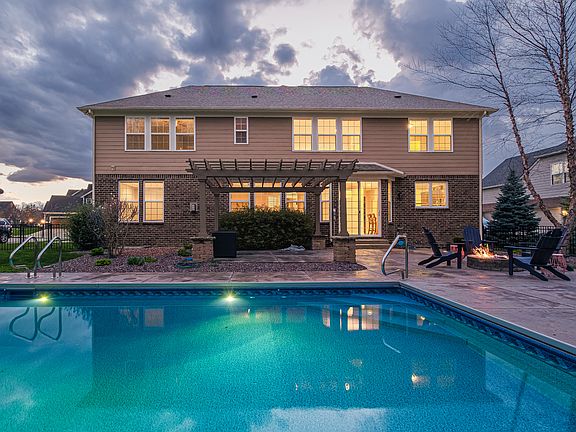 Don't miss this gorgeous 6bd/4.5ba home with a pool! The front porch is the perfect spot to enjoy your morning cup of coffee. As you enter, you're greeted with a beautiful 2 story entryway and resealed hardwood floors! The first floor has everything - an office, formal dining room, laundry room, mud room, and additional bedroom. Keep walking through to find a spacious family room with fireplace, breakfast room, beautiful kitchen with an island, stainless steel appliances, and pantry. Upstairs, you'll find the huge primary suite with a garden tub, standalone shower, separate sinks, and a walk-in closet. With a loft and three additional bedrooms, there's so much space to custom this home. The basement is fully finished and so spacious, including another bedroom and full bathroom! Other highlights include a huge linen closet in the master bathroom and surround sound on the main and lower levels. Step outside into your fully fenced-in backyard oasis - a 7-foot deep heated pool, gas fire pit, pergola, and beautiful landscaping! Recent updates include all new carpet and fresh paint.