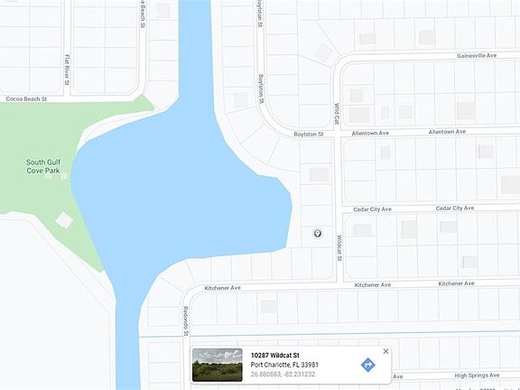 This home site is located in a quiet neighborhood in Port Charlotte, Gulf Access SFH lot on wide canal(Santa Cruz Waterway); close to everything. Please note that this home site will not be sold on it's own and will be sold with 10299 WILDCAT ST (MLS 220039559)