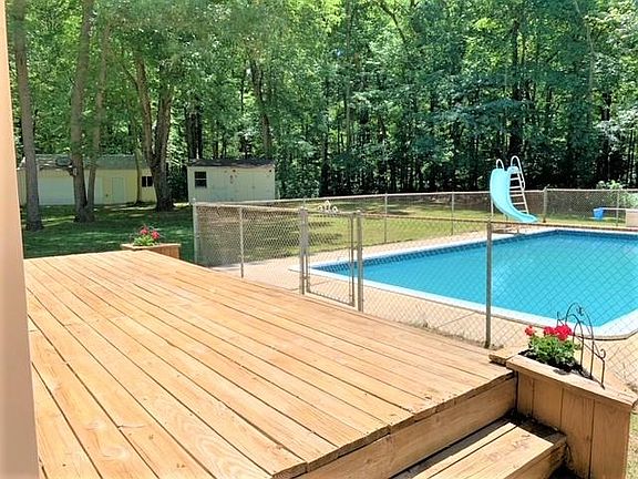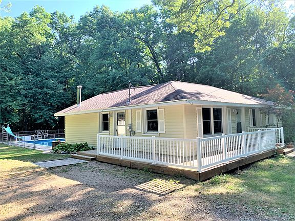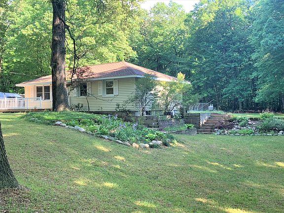 4 bedroom ranch walkout on 10 mostly wooded acres in Texas Township (LOW TAXES). Mattawan Schools! The main floor has spacious galley kitchen that leads to back eating & sitting area with vaulted wood ceiling and a wood burning stove. The back slider in this room leads out to large deck and brick patio overlooking the private inground pool! Original wood floors in Liv. Rm, hall and 3 main flr. bedrooms. The lower level has a large bedroom with slider that leads outside, family/rec room, laundry room, and storage area. House is vinyl sided and has a new roof! Large 2 car garage, and bonus 24x32 pole barn and shed. ANY OFFERS TO BE REVIEWED MONDAY, 6/21 10AM.