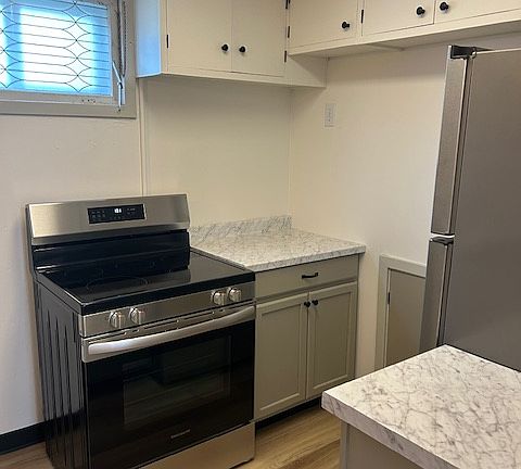 This is an super cool lower level apt that has been completely remodeled. It has fresh paint, all new flooring, kitchen appliances, lights and fans. The custom tile work in the kitchen is quite beautiful and there is a bonus room as well. This sits in a highly desirable neighborhood and is on a lovely quiet street. Driveway parking and a large, shared backyard. It also has a washer and dryer included. Tenant pays electricity and 30 % of water and gas. Don't miss out on this one