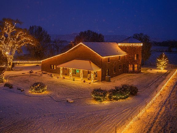 Privacy, Views & Versatility on 7.6 Acres A rare combination of rustic elegance and modern efficiency, this nearly 3,800 sq. ft. custom brick home sits on 7.6 acres w/sweeping mountain views. Designed by the original owner/builder this one owner home is both energy-smart and low-maintenance with a complete 10 kWh solar panel system, 2" foam + blown insulation, Jeld-Wen low-E windows with blinds, in-floor heat, air conditioning (not swamp cooler), and thoughtful custom finishes throughout. Property Features Land & Water: 7 Irrigated acres, pond, productive hay pasture (currently in corn), fenced grazing area, manicured yard, raised garden beds, fruit trees with 12 zone sprinkler system to all vegetation. Irrigation piping to remain with the property making this a move-in property. Farm & Animal Facilities: Run-in barn offers clever easy clean removable panels to clean, deluxe chicken coop with run and easy access egg collection, dog pen with protected dog kennel area, tack room with power, cattle guard and fencing and gates fully set up for cattle, horses, chickens, & dogs. Outdoor Living: Drive in on asphalt driveway, two covered porches, mature shade trees, privacy and quiet in this North Area of Grand Junction with just 10 minutes to shopping. Breathtaking mountain views and sunsets. Workshop & Indoor RV Storage 66’ x 80’ Heated & Cooled Workshop with 21' ceilings 220 power, reinforced floors, R25 walls & R30 roof Divided workspaces, Workshop and RV storage bay areas (12’ & 14’ doors) Some shelving and bike rack included Exterior covered storage for equipment and firewood Home Highlights: Open Concept Living Dramatic vaulted 17’ ceilings, cedar-mantle,new wood-burning stove with custom wood storage closet, central vac, and custom lighting. Chef’s Kitchen: Quartz counters, rustic hickory cabinetry with tall uppers , custom eat-in island, large double convection ovens, gas cooktop, high-end fridge/freezer, pantry, appliance garages, and deluxe water purification system. Primary Suite: Split design from main living areas with spa-like bath, double-entry shower, cedar-lined walk-in closet, private access to covered porch, and 14’ swim spa (included), plus a 8x8 bonus safe room. Bonus Loft: Custom barn wood feature wall and loft area—perfect for displaying treasures, collectibles, or personal hobbies.Additional Loft Space: Large Bunk room + crafting area (craft table & hutch included)stone-detailed turret ideal for office, gym, library or kids playroom.
