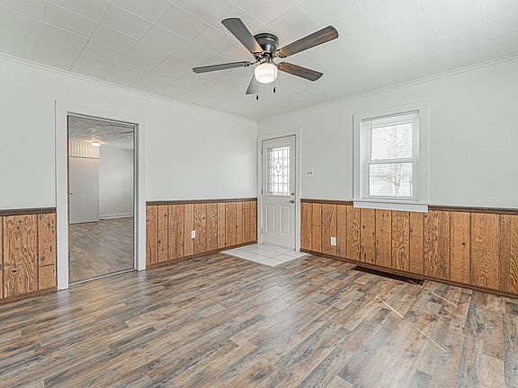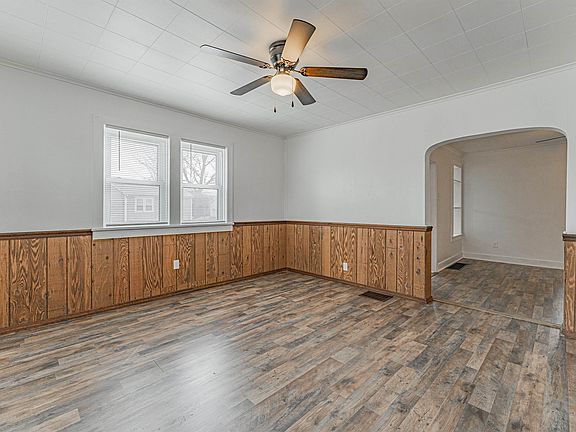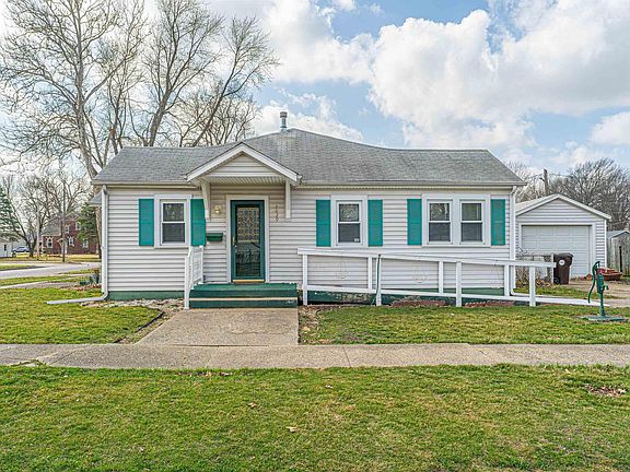 Darling turn key move-in ready two bedroom vinyl sided bungalow style home situated on a corner lot just a short stroll from the local park district, Lincoln Community High School, and the historic downtown district! Dressed from top to bottom inside with fresh paint, new floor coverings, and modernized fixtures throughout, this residential gem needs nothing but you and yours! The welcoming interior features a front facing living room, gracious formal dining room with a charming built-in, large 9X18 side facing rec room with adjacent laundry facilities as well as an exterior access point, fully equipped efficient kitchen, two nice sized bedrooms, and a full hall bath. Property also features a partial basement, vinyl replacement windows, quaint fenced yard, patio area, and a detached garage. This sharp property will NOT last long at $84,900!