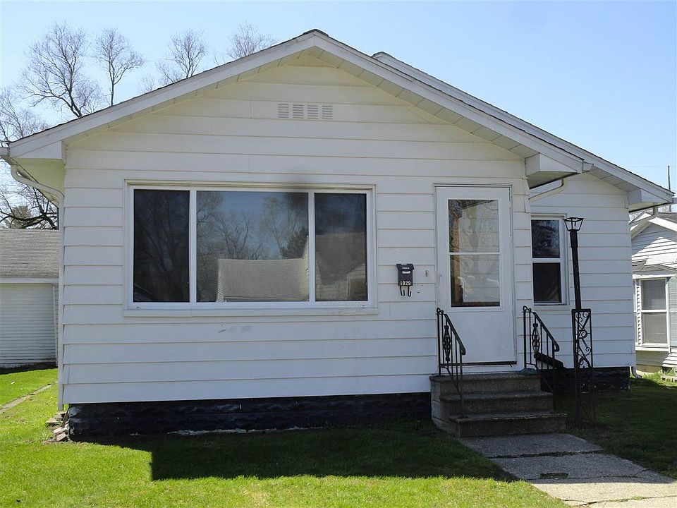 Great potential, starter home on a large corner, city lot (2 lots). Hardwood floors in living room and dining room (need a little TLC). Oversize two-car garage with woodburner.