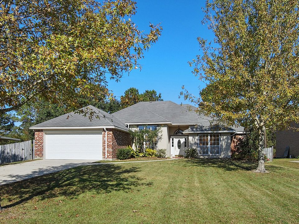 PRIVATE LOCATION IN FLOOD ZONE C; LAMINATE FLOORS IN FOYER AND DEN; TILE IN KITCHEN, CORIAN COUNTERS, 42" CABINETS, STAINLESS STEEL REFRIGERATOR STAYS, STEP UP CEILING IN MASTER, MASTER BATH HAS JETTED TUB, LARGE REAR YARD. THIS HOUSE HAS SPECIAL LANDSCAPING LIGHTS!!