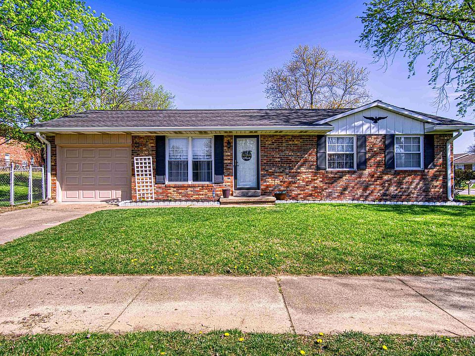 Great views in the city and sitting on a corner lot! You'll love the handy central Evansville location. This home is extremely clean and neat. You'll enjoy three bedrooms, 1 1/2 baths, a full laundry room and a large eat-in kitchen. Fully fenced in side and back yard and a 1 car attached garage. Directly across the boulevard is Diamond Valley park! Roof is 6 years old, HAVC is 3 years old. Exclude SimpliSafe Alarm System and Cameras!
