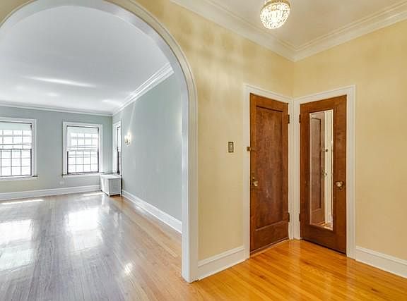 Elegant large sunny first floor unit on a quiet tree lined street in Evanston's Oakton Historic District. Unit features natural hardwood floors throughout. Spacious living room with decorative fireplace. Large formal dining room with French doors. Three bedrooms and one bath. Eat in kitchen with walk in pantry and additional closet. Bright and airy. Lovely shared backyard and enclosed back porch. Each unit has its own washer and dryer in basement. Easy street parking. Friendly dog under 30 pounds welcome with pet fee, no cats please. Additional storage included. Short walk to parks, St Francis Hospital, restaurants and shops on Main St. Friendly community, easy access to transportation. About a mile to Lake, Metra's Main Street station and Red Line "L". Approximately 3/4 mile to Purple "L" line. Oakton Elementary School 1 block. Chute Middle School, 4 blocks. Available June 1st.