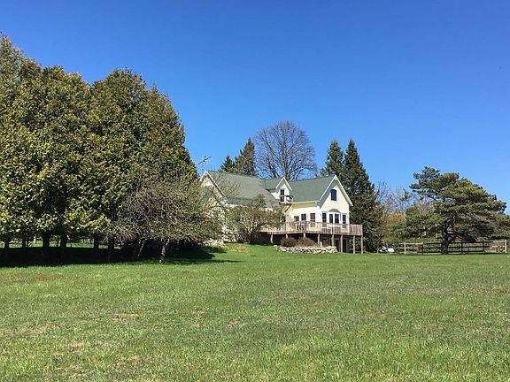 Best combination of restored character & gorgeous new! Historic farm home has 4 bedrooms each with their own bathroom in the beautiful older part of the home. 3 rooms upstairs and one on the main floor with its own entrance. There is small kitchen that accessible to these bedrooms along with laundry facilities. Then enter into the newer part of the home. Cathedral ceilings, granite counters, gas fireplace, beauty everywhere you look. Along with the scenic pastoral views from all the windows. 2 decks, 1 large porch, orchard and great yard space. Outbuildings: garage/barn (1,288 sqft.) barn (688 sqft) and an art studio/summer kitchen that is currently used for storage. Used as a home and is currently used as a successful Bed & Breakfast.