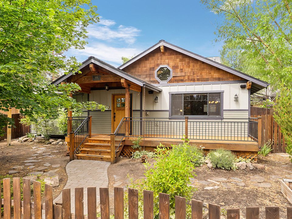 Downtown renovated 2052 SF home plus a 768 SF guest quarters above the detached garage, just a few blocks from Drake Park and Newport Market. Main home is a charming bungalow with a large great room, white oak wood floors, floor to ceiling rock accent gas fireplace, vaulted tongue and groove ceiling and knotty alder cabinets in the kitchen. Large primary suite on the main level with a gas fireplace, bathroom with a soaking tub, tiled shower and a walk-in closet. Downstairs is a guest bedroom, full bath and a flex space perfect for a media room or an office. Main house has forced air heat and AC. Detached oversize 2 car garage with alley entrance. Guest quarters above the garage has 2 bedrooms, 1 bath, wet bar with dishwasher and refrigerator, gas fireplace, ductless heating and AC, ceiling fans and W/D. Front and back yards are fenced. New Exterior Paint. NO HOA or CCRs.