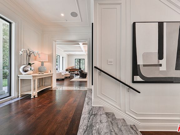 Beverly Hills Georgian Traditional. Over 10,700sqft on approx 1/2 acre on the most prime cul-de-sac on the border between Holmby Hills and Beverly Hills. Street to street with access from Ridgedale and Hanover. Surrounded on both sides by $67.5M+ estates, the location is unparalleled. Finest materials blend to create a modern and fresh aesthetic. Walnut floors with marble inlays throughout, each room paneled with unique details, high ceilings, metal windows and grand gourmet kitchen fit for an editorial magazine. Master suite with dual baths in book matches marble. 4 additional bedrooms all en-suite upstairs. Total of 7 bedrooms. Additional features include game room/bar, lavish theater, gym, 6-car garage and putting green.
