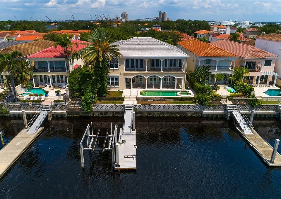 Waterfront living on a rare double lot in 24-hr gated Harbour Island, Downtown Tampa. This estate-size home awaits your TLC and features a grand 2-story foyer, sweeping staircase, and expansive living room with French doors opening to a covered balcony and stunning water views. Chef’s kitchen includes Viking gas range, Subzero fridge/freezer, warming drawers, and breakfast room. Full butler’s pantry connects to formal dining. First floor also offers a den w/ en-suite bath, large laundry room, and 2-car garage. Upstairs, the owner’s suite boasts private waterfront balcony, dual walk-in closets, spa bath, and adjacent wood-paneled office. All bedrooms have en-suite baths and walk-in closets. A 972 SF in-law suite includes private entrance, sitting room, kitchenette, and full bath. Whole-house gas generator, pool, and private dock with 10k lift. Walk to Riverwalk, Water Street, Amalie Arena, Bayshore, fine dining, and more. Easy access to I-275, Selmon Expwy, Tamp Int’l Airport, and Gulf beaches.