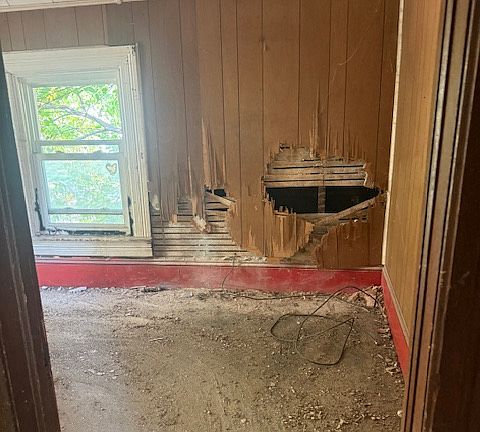 Needs a new electrical box, work to the basement stairs, new windows, and drywall repair.
