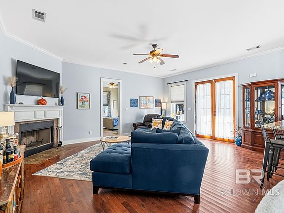 Welcome home to this beautifully maintained 3-bedroom, 2-bath cottage-style home located just minutes from the sparkling Gulf Coast beaches. From the moment you step inside, you'll be welcomed by soaring 10-foot ceilings with elegant crown molding, fresh neutral paint, and hardwood floors that flow through the main living spaces, creating a bright and inviting feel. The kitchen shines with granite countertops, freshly painted cabinets with new hardware, a new sink faucet fixture, and a lovely decorative ceramic tile backsplash. The hall bathroom has been thoughtfully updated with a new toilet, freshly painted cabinetry, all new hardware on cabinets and walls, plus both bathrooms in the home feature beautiful granite countertops. Enjoy outdoor living at its best with a large covered front porch perfect for rocking chairs, a private fenced-in patio area for relaxing, grilling, or entertaining, and refreshed landscaping complete with a mature blueberry bush. All exterior concrete around the home was just power-washed, giving the home even more curb appeal. Additional features include an attached 2-car garage plus 3 full size parking spaces in the driveway, providing plenty of room for guests. Located in a desired and quiet gated community where residents enjoy resort-style amenities, including a clubhouse with a full kitchen and event space, a library, fully equipped gym, a year-round saltwater pool, and peaceful walking paths throughout the neighborhood. With its coastal charm, modern updates, and unbeatable location, this Foley gem offers the perfect combination of comfort, style, and convenience. Buyer to verify all information during due diligence. Owner is a licensed real estate agent in Alabama.