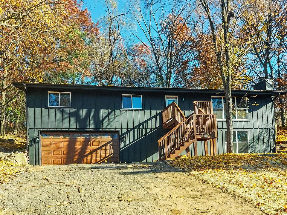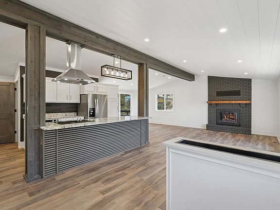 Welcome to this newly renovated single-story home with a front walkout lower level and tuck-under garage in the Village of North Hudson! Step inside to a bright, open-concept main level featuring LVP flooring and new drywall throughout, custom Chef's kitchen with custom cabinetry, granite countertops, new stainless steel appliances, a built-in microwave, a free-standing range hood, a new wood-burning fireplace, and fresh