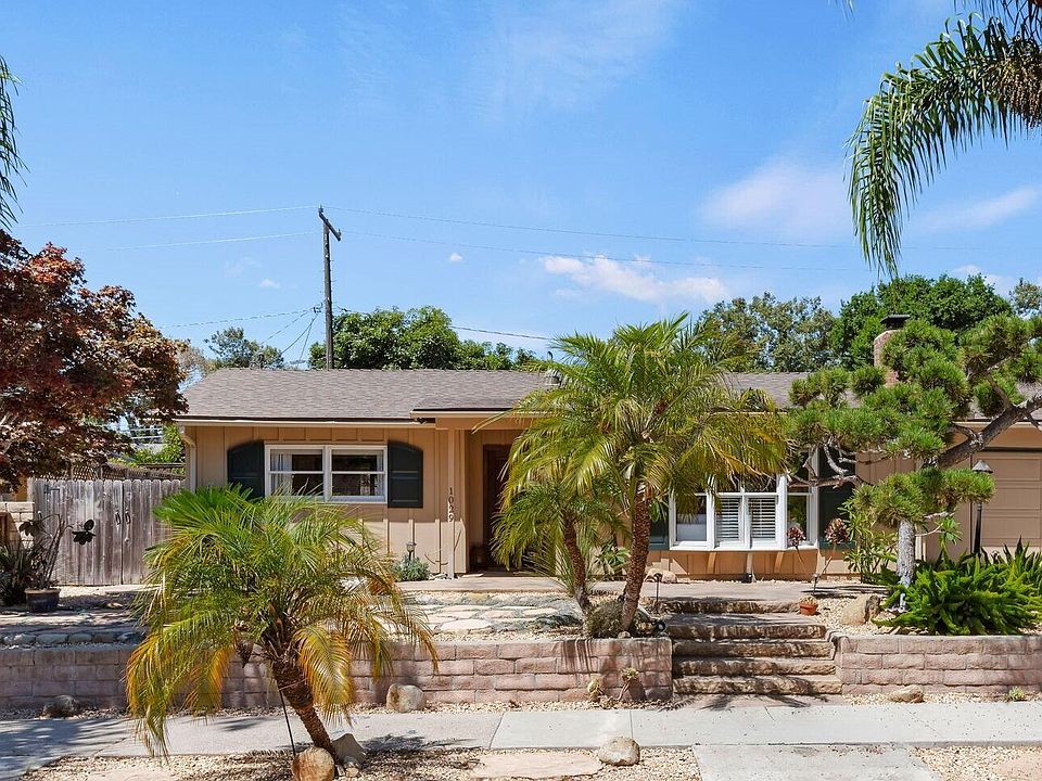 This meticulously maintained home has many highlights including 3 bedrooms, 2 baths plus an additional family room AND versatile office/flex space with vaulted ceilings! With beautiful walnut floors throughout, the cozy living room, Venetian plaster walls and bay window showcase the home's comfort and style. The upgraded kitchen features custom cabinets, granite countertops, limestone floors, stainless appliances and a built-in hutch. The bathrooms are updated with the primary featuring a steam shower! Located in the sought-after Foothill neighborhood on a quiet street with mountain views, there are also many fruit trees such as lemon, lime, tangerine, avocados, plum and more in the yard to enjoy. Don't miss this turn-key home close to Tucker's Grove, schools, shopping and the beach! Newer roof, upgraded heating and cooling and a shed are just a few of the many other upgrades the owners have lovingly done to maintain this home over the years. You won't want to miss this light-filled home.