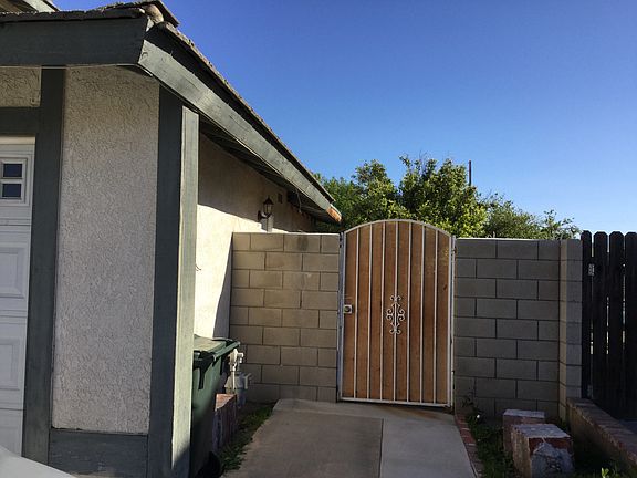 2 story home, 3 car garage, RV parking, Brick Wall fencing on three sides of the house with Wrought Iron gates on both sides, Central Air, Central Heat, Quiet neighborhood in a Cul-de-sac. Orange tree, Tangerine tree, and Pear tree. Close to schools and grocery stores, between the 10 and the 210 freeways. It is a House of Prayers with many Miracles.