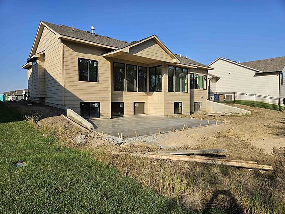 Beautiful Dylan floorplan being built by Prairie Construction. 5 bedrooms, 3 bathrooms, 3115 sqft with 3-car garage. The house faces north and is on a tree line which allows for separation between you and your neighbors. View out basement with 9ft walls really make the basement feel extra spacious. Black frame windows inside and out. Interior windows are wood trimmed. Master bath has fully tiled shower and soaker tub. Chest of drawers in walk-in master closet. Office/Library off of master. Gas fireplace in living room. Nice sized mudroom off of garage. Lots of built-ins that really make this home stand out. 93% efficient furnace. Well, Irrigation system & landscaping included. Andover School District. Close to 1 or 3 community swimming pools all with new liners just put in last October. Park with basketball court and pickleball court. Stocked fishing ponds. This is a must see and won't last long. There is a model home of same floorplan in Hawks Nest that can be toured at 3239 N Bedford St.