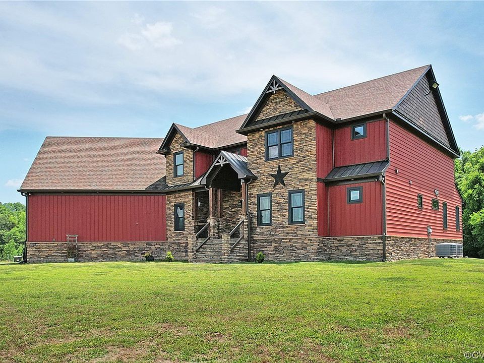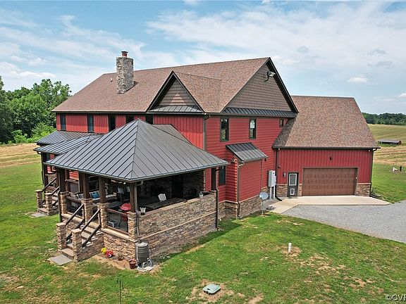 Welcome to Fairview in Hanover County, a premier equestrian estate located just north of the Town of Ashland, Virginia. Set on 113.47 gently rolling acres, the main residence is craftsman quality, custom built in 2017. Inside, you will find a warm and inviting interior that includes solid wood beams and beautifully hand-scraped hardwood floors. The spacious living room has a vaulted ceiling and striking floor-to-ceiling fieldstone fireplace. The gourmet kitchen is highlighted by commercial-grade appliances, knotty alder cabinets, chiseled edge bronzite quartzite countertops, two hammered copper sinks, and large walk-in pantry. The first floor primary suite features a double-sided gas fireplace, jetted tub, and double shower. Primary bedroom suites are located on both floors, each with large walk-in closets. Full bathrooms in all five bedrooms. Outside, you are surrounded with fenced pastures, hay fields, forest, multiple outbuildings including a 6-stall barn, 104’ x 28’ insulated and conditioned workshop, and the late 1800s original Fairview farmhouse, awaiting a complete renovation. With private ponds, caves, and over 2000’ of river frontage, this property is the complete package.