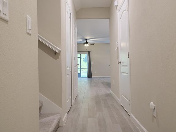 Nestled within the Lennar Masterplan community of Longleaf, this elegant townhome offers three bedrooms and two and a half bathrooms spanning over 1,750 square feet of living space. Spread across two stories, the upstairs features three carpeted bedrooms, including the master suite with its own bath, a shared bathroom for the other two rooms, and a convenient laundry room equipped with a washer and dryer. Downstairs, you'll find a half bathroom adjacent to the kitchen, living room, and dining area, all featuring sleek ceramic flooring. The residence is equipped with a range of smart home features, including a smart doorbell, keypad, and thermostats for both levels, as well as a smart garage opener. The kitchen boasts stainless steel appliances, including an electric range, microwave, refrigerator, and dishwasher, complemented by granite countertops and chocolate cabinets with ample storage space provided by a generous pantry with shelving. The spacious living room awaits, complete with a pre-installed TV mount for cozy movie nights. Outside, a covered lanai beckons with its ceiling fan, while an attached one-car garage and driveway provide convenient parking. To top it all off, the townhome is located approximately 5 minutes (1.8 miles) from the Oakleaf town center, where you'll find a variety of restaurants and grocery stores to choose from. Please no smoking or pets in rental. Renter is responsible for water, electricity, rental insurance, and internet.