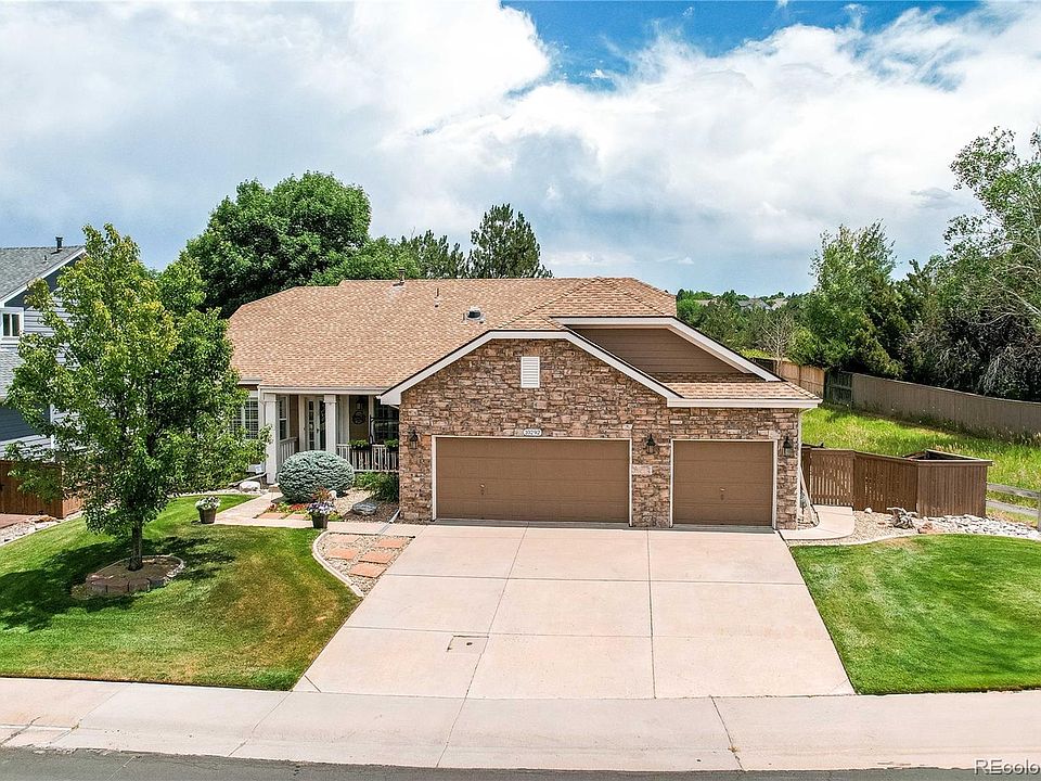 Don't Wait to See this Rare, Meticulously Maintained and Updated Ranch in Highly Coveted Area of Highlands Ranch! Come Fall in Love with this Massive Rustic Mountain Feel Ranch, with almost 1900 Finished Square Feet for True Main Floor Living! This Charmer Boasts True Hardwood Floors, Granite Countertops, Kitchen Island and Huge Kitchen with Tons of Cabinet Space and Bonus Built Desk Area, Plus Eat in Kitchen Nook! This Open Floor Plan Concept has the Kitchen Open to Your Stunning Great Room with Towering Ceilings Throughout and Trimmed out with Crown Molding. The Fireplace Welcomes you to Enjoy Winter Evening with Family an Freinds in this Magnificent Space. The Great also Features Additional Built in Cabinetry! Separately you have A Formal Dining Room with a Bay Window that Could have Alternate Uses! The Spacious Primary Suite Features a Five Piece En Suite Bathroom and HUGE Walk in Closet! One of the Two Additional Bedrooms in non-conforming with its Current use as a Well Appointed Office with French Doors, This Could Easily Be Converted to Conforming Bedroom. The Hall Bath has been Beautifully Updated with a Large Shower with Glass Door Entry. And Wait there is the More, the Almost 800 Square Foot Basement has ENDLESS Possibilities! Could be used as a Studio, Gym, Open Play Room, Entertainment Room, or Finish Off 2 additional Bedrooms and Bath!? Again its's an Open Canvas! All this Homes sits On a Spectacular 8400 Square Foot Lot that Backs To Open Space, Park, and Walking Trails. Come Entertain on Your Massive Composite Deck or Just sit and Enjoy the Privacy of Towering Pine Trees. Enjoy a Quaint Gardening Space as well! You Will Experience a Peaceful Oasis! The Landscape is also Meticulously Cared for and Your Curb Appeal is Fabulous. Rounded out with a 3 Car Garage with Room for All the Toys! This Really is a Fantastic Home in an Award Winning Community with Resort Style Amenities! Hurry to See this One!