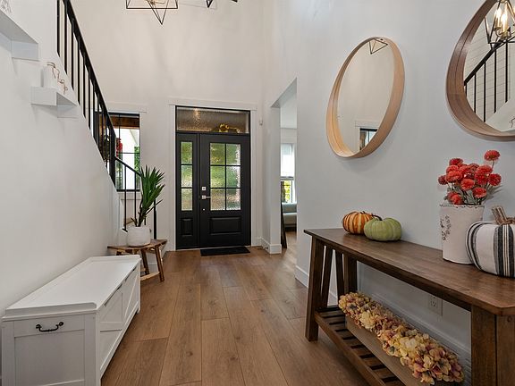 Step into this stunning executive home where luxury meets comfort. The main-floor primary suite offers style & functionality, with an elegant ensuite and patio doors leading to a spacious deck and hot tub for outdoor relaxation. The chef’s kitchen features soaring ceilings, a coffee bar, stainless steel appliances & abundant pantry space, flowing seamlessly into the family living room with its 20’ fireplace. Upstairs are 2 large bedrooms, a bathroom, and a versatile flex room. Additional highlights include an office, double garage, RV parking, a large driveway, and a very private backyard with a covered back patio & charming outbuilding. More than a house - It’s your dream home waiting for you to make it your own!