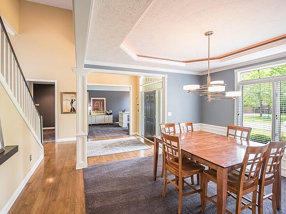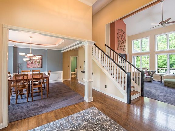 Stunning 6 bed/4.5 ba home on 3/4 ac priv wooded lot w/firepit nestled in trees! As enter your new home you're greeted w/wall of windows in 2-story gr rm showcasing beau views & 2-sided gas firepl; Kit boasts lg cen island, eat area & walk out to newly refin deck; Spacious din rm & office; Relax in main fl master suite w/beau views, dual sinks & granite countertops; 4 beds up w/j-n-j ba; Walkout LL w/wet bar, theater, bed & full ba; Walk out to patio w/freshly refin hot tub & beau landscaping!