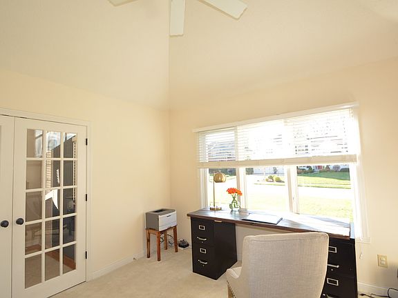 Prepare to be impressed! Great rm w/soaring ceilings, built-ins, tons of windows & double sided fireplace into the kitchen w/granite, hardwoods, island & bay window. Formal dining rm w/lovely wainscoting. French doors open to an office w/cathedral ceilings. Relaxing mstr w/ tray ceiling & spa-like bath. Attic w/tons of storage could be finished. Finished bsmt great for a rec room, play room, etc. Trex deck for summer entertaining & mature trees. Custom home filled w/ natural light!