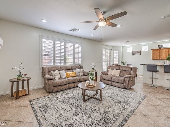 This STUNNING HOME is now on the market! Located in the highly desirable Mountain's Edge community. This home features plantation shutters, new paint, carpet, modern lighting, and upgraded thick baseboards for a fresh, elevated feel. Nestled on a corner lot, it boasts beautiful desert landscaping in the front and backyard, plus a covered patio and low-maintenance outdoor space, perfect for relaxing or entertaining. Enjoy access to an amazing community center with a fitness center, swimming pool, and relaxing spa.