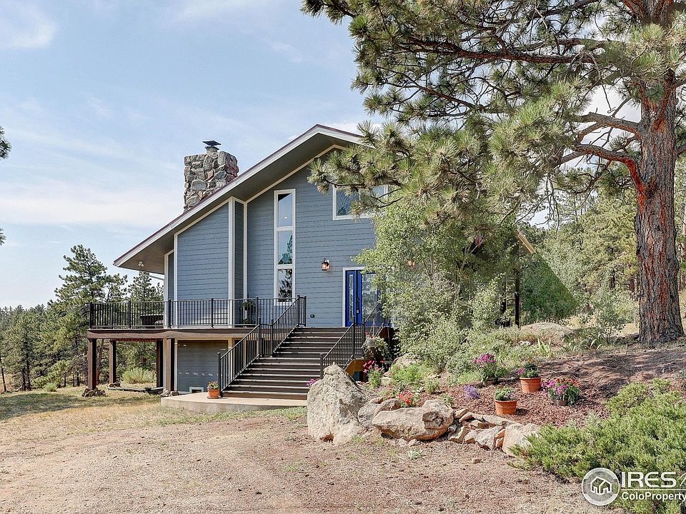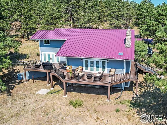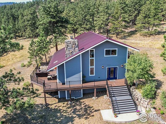 First time on the market in over 35 years!This beautifully remodeled 2-story home sits on 75 breathtaking acres that can be divided into two parcels. Bordering Roosevelt National Forest and the Sylvan Dale Guest Ranch Conservation Easement Land, the property offers unmatched privacy, panoramic views, and direct access to endless trails.Inside, you'll find light-filled living spaces, 3 bedrooms, and 4 bathrooms. The stunning kitchen flows into a dining room surrounded by windows that frame incredible views. Both the dining and living rooms open onto a spacious wraparound deck-perfect for entertaining, stargazing, or simply soaking in the peace and quiet.Upstairs, the primary suite feels like a retreat with a spa-like bathroom, walk-in closet with stackable washer and dryer, and a private balcony ideal for morning coffee. The main and upper levels feature wood flooring, and all three bathrooms have been tastefully remodeled.The walkout basement is ready to be finished with your personal design touches and already includes a second laundry room and a 4th bathroom awaiting updates. Additional highlights include a detached 2-car garage, efficient heating and cooling with a heat pump, a newer metal roof, durable James Hardie cement siding, and a seasonal stream running through the property. There's also plenty of space for horses and outdoor recreation.Located just 20 minutes from Loveland and everyday conveniences, this property offers jaw-dropping 360 views of Devil's Backbone, Boedecker Lake, Boyd Lake, and the surrounding mountains. A rare opportunity for unparalleled mountain living-privacy, beauty, and adventure all in one.Slow down when you drive up so you don't miss the Wild Turkeys, Deer, Elk...it seems like there's always some wildlife wandering through this peaceful area.