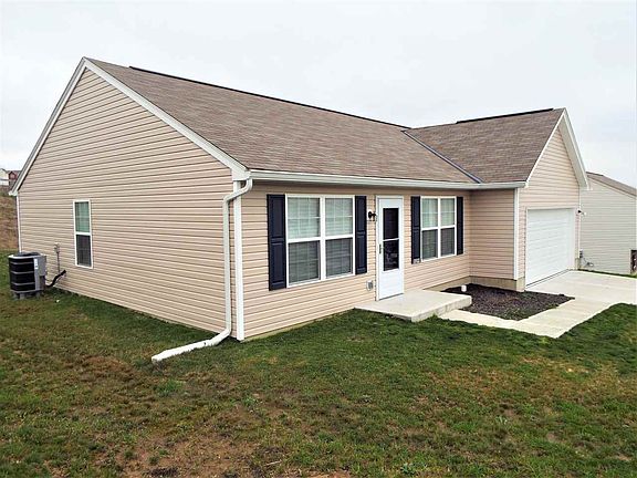 No step, newer ranch home with open layout, generous cathedral ceiling and lots of natural light. Open kitchen area features extended counter bar, lots of cabinets for extra storage space plus all stainless steel appliances. Private master suite with adjoining bath. Two additional bedrooms, convenient closet laundry plus 2 car garage with garage door opener and key pad. Hard to find generous yard gives plenty of space between neighbors. Great cul-de-sac location. Only 1.5 years old! Occupancy at closing. (Back on market due to previous buyer's financing falling through.)