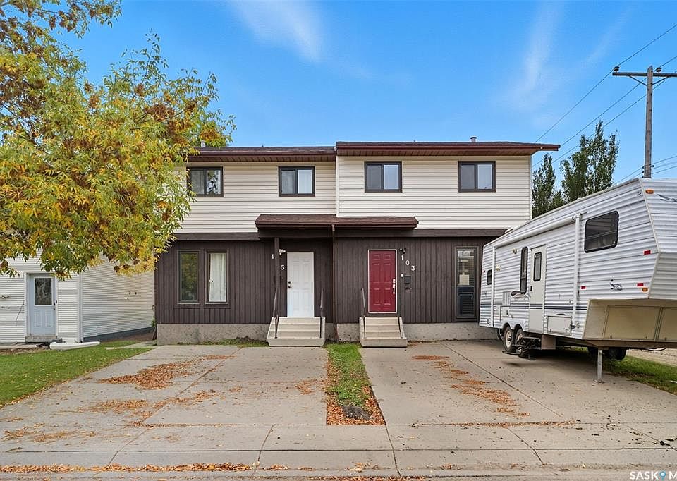 Exceptional Duplex in Forest Grove – Investment or Owner-Occupied Opportunity Located in the highly sought-after Forest Grove neighborhood, this well-maintained 2-storey duplex presents a rare opportunity for investors or owner-occupiers alike. Each side offers over 1,100 sq. ft. of living space with a functional layout featuring 3 bedrooms and 1.5 bathrooms. (photos from unit 103 only) Unit 103 has been Owner occupied since property was purchased in 2018 and features a fully finished basement with a soundproof theatre room wired for surround sound, laundry and desk in the utility room, plus an enclosed deck with ceiling fan, updated kitchen with refinished cupboards and new countertops. Both units have reverse floorplans with the same measurements on either side. Each unit has separate power, water, and gas meters. Unit 105 Tenant occupied and currently in a lease ending August 31, 2026.Both units have seen significant upgrades over the years including: New vinyl windows (2023), Shingles (2020), Updated flooring, Unit 105 - a new hot water tank (2023). Both sides feature, fenced backyard with private decks, parking right in front of each unit and unit 105 has a new hot water tank (2023) Close to the University of Saskatchewan, schools, parks, and shopping, this move-in ready duplex is a rare find that checks all the boxes for families, students, or investors alike.