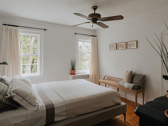 Introducing Van Rensselaer Lower Manor. Built c1685 onward, this historical home is situated on 62 acres of green lawns, fields and wooded terrain that offer Catskill Mountain views. The main house of the estate recently renovated to preserve past details while introducing modern amenities consists of over 5,000 sq ft of living space with an additional 2,000 sq ft separate studio building and a 2,800 sq ft barn. Approach the home via a circular driveway and enter through a gracious wide hall flanked by the south and north wings of the house. The south wing features a cozy living room with a majestic hearth, leading to a dining room and summer kitchen adorned with French doors opening to a charming gravel patio offering endless nights of entertaining. A convenient powder room and an informal sitting room/office complete this wing. Meanwhile, in the North wing, one is greeted by the original kitchen hearth and bake oven. The wooden mantel has been stripped to lend a more contemporary feel. A second dining room and (winter) kitchen are found off this living space all complimented by a tastefully renovated full bathroom. Three separate stairways provide access to a sprawling second floor with a total of eight rooms, 5 currently set up as bedrooms. Three full baths, all elegantly renovated, complete the second level. Step outside to discover a c1825 post-and-beam barn at the edge of a 60-acre wooded expanse. Significant restoration has been done to maintain its integrity and provide striking views of the Catskill Mountains. Sited closer to the road stands the Flower Shop (zoned for retail), a fully renovated 1950s structure, currently utilized as an art studio. This space boasts a two-car garage, full bathroom, 10' 8 ceilings and large plate glass windows with soundproof inserts. These south facing windows create a soft glow and clean sensibility meant to inspire the pursuit of one's entrepreneurial dreams. Every element of this estate from its 17th century Manor home to the more contemporary Art Studio has been thoughtfully restored to accentuate original details without sacrificing modern comforts. A sophisticated contemporary palette blends seamlessly with the enduring charm of hand-hewn wide board floors, forged hardware, original doors and countless other details to make this property timeless yet current. House/studio cooled w mini-splits Located in historic Claverack, the Lower Manor is10 min to Hudson / Amtrak, 15 min to Hillsdale, 2 hours to NYC