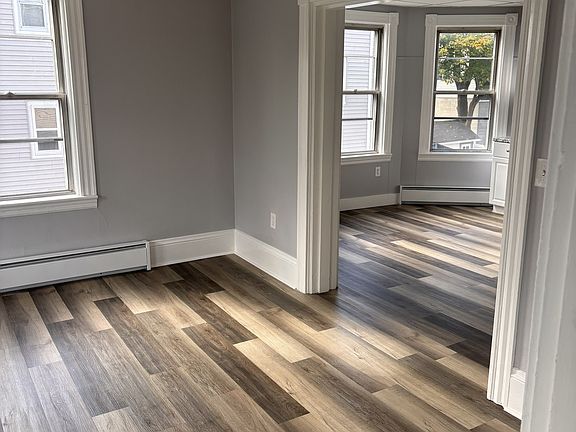 Beautiful and spacious 1 bedroom apt on 2nd floor. Hot water included. Hydronic baseboard electric heat. Lots of closet space. Hot water included. One off-street parking space available. Apartment is move-in ready. Need 3 months for first, last and security to sign one-year lease.