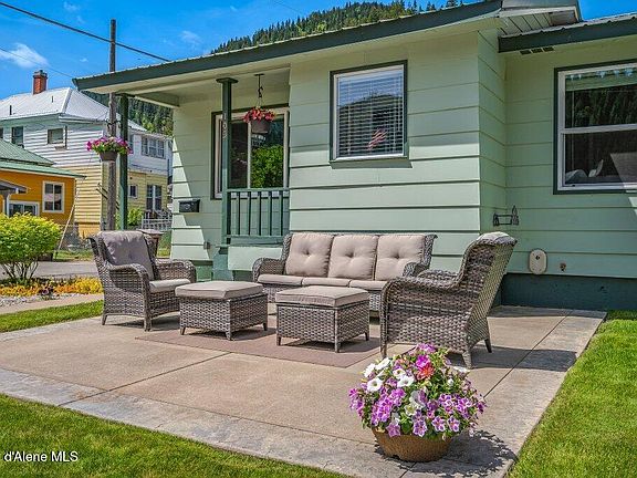 Located within the historic town of Wallace, this charming, low maintenance, 5 bed, 2 bath home would make a perfect single family home or vacation rental. Parking is no issue with the insulated 2 car garage with 220 power tucked behind the house and extra paved parking out front. The front yard features a stamped concrete patio for relaxation and enjoying the sights during the summer. On demand hot water system and air conditioning for added comfort. Easy access to local shops, eateries, and community events that define Wallace's welcoming atmosphere. Outdoor enthusiasts will enjoy the proximity to the Trail of the Coeur d'Alene's which offers scenic biking and walking paths, while nearby Lookout Pass and Silver Mountain ski resorts provide year-round recreational activities.