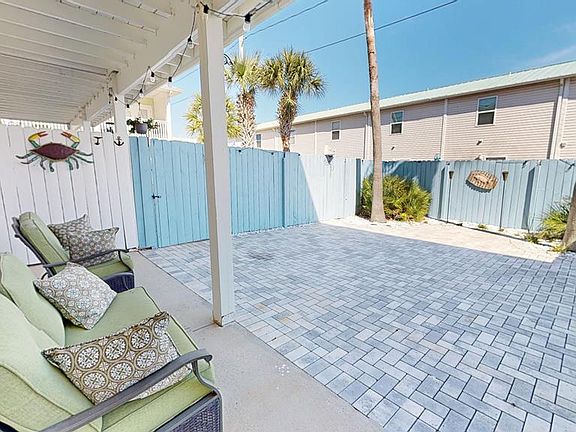 Meticulously Maintained. If you are looking for a vacation rental or family getaway this is the prefect spot for you. This 4 bedroom 3 1/2 bath townhome is just steps to the white sandy beach. The first floor features two bedrooms, and a full bath. Walk out back and enjoy the private fenced in courtyard with beautifully maintained palm trees. Second floor features the large living room, kitchen with custom cabinets and granite counter tops, dining, laundry, 1/2 bath and 2 balconies. The third floor has 2 master suites each with private bathrooms and balconies with amazing gulf views. Perfect spot for entertaining and enjoying your afternoons outdoors. This home is located across the street from the Mexico Beach Marina and within walking distance to restaurants and shopping. Close to prime fishing spots and boat ramp. Centrally located between Panama City and Port St Joe. Luggage lift for your convenience. Ring doorbell and cameras inside and outside of home. LVP flooring throughout, newly painted outside (2023), New HVAC (2023). Call today to schedule an appointment.