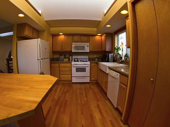 Granite counters, refinished hardwood floors, new carpet, new paint complement this beautiful home in a quiet neighborhood overlooking Sehome Hill and snow capped Canadian Rockies. Open floor plan allows light to stream in. Bright living room, dining room, and kitchen look out to a large deck with a view that is perfect for entertaining. Fenced back yard. Part of garage is converted to bonus space that could be a 4th bedroom, hobby room. Additional storage and workshop off lower utility.
