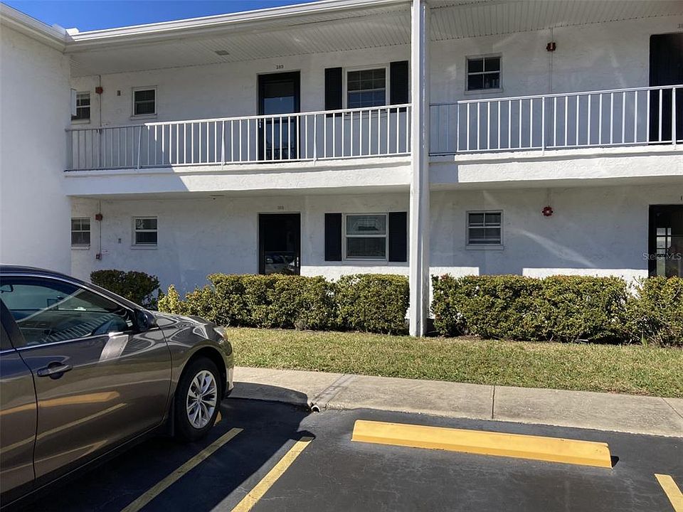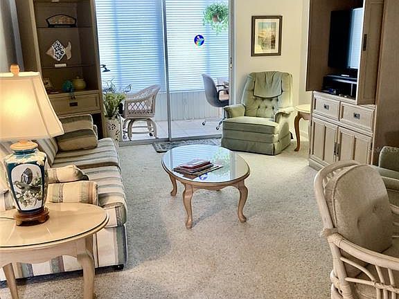 Under contract-accepting backup offers. Exceptionally nice first floor turnkey furnished condo overlooking a spacious greenbelt area with mature landscaping. The kitchen has light wood cabinets plus newer appliances including built-in microwave and tile floors. There is a walk-in shower in the bathroom and newer vanity. Lanai is glass enclosed with tile floors and storage closet - perfect place for your computer desk and hide-a-bed for company. Ceiling fans in kitchen, dining room, bedroom, bath and porch. A/C system new 1/25/24 with 5 year warranty on parts, newer electric panel and windows in kitchen and bath have been replaced. Outside lanai is a small patio and a short distance to picnic table and grill. Outside electric meter for the building has been replaced. Within the community is a clubhouse, with activities, heated pool laundry facilities and shuffleboard. This is a 55+ community, one small pet allowed. Close to shopping, about ten miles to the beach and 20 minutes to the airport.