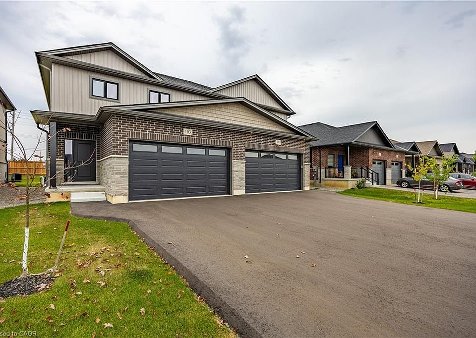 Welcome to 103 Amber Street, Waterford – a newly built semi-detached home that blends modern design with small-town charm. With1787 sq. ft. of thoughtfully designed living space, this 2-storey semi-detached home offers the perfect balance of comfort, style, and functionality, making it ideal for today’s growing families. Step inside from the covered front entrance into a spacious foyer that opens into a bright, open-concept main floor. The kitchen is a true showpiece, featuring custom cabinetry, quartz countertops and a breakfast island, all designed with modern convenience in mind. The dining area and great room flow seamlessly together, creating an inviting space for gatherings and everyday living. Luxury vinyl plank flooring throughout the main level ensures both durability and style. Upstairs, you’ll find three generously sized bedrooms, including a primary suite complete with a 4-piece ensuite and walk-in closet. Practical details such as an upper-level laundry room with sink, 9-ft main floor ceilings, and an attached double-car garage with 8-ft door add everyday convenience. The unfinished basement with large windows and a rough-in bath is ready for your personal touch. Beyond the home, Waterford is a community that truly shines. Known for its friendly atmosphere, and welcoming downtown, local stores and restaurants, and Waterford North Conservation Area with three ponds and trails, it offers the best of small-town living while keeping you close to everything you need. Larger centres like Simcoe, Brantford, and Hamilton are just a short drive away, giving you easy access to shopping, healthcare, and major highways while letting you come home to peace and charm. With modern finishes, energy-efficient systems, and fibre-optic internet already in place, 103 Amber Street offers more than just a house—it offers a lifestyle.