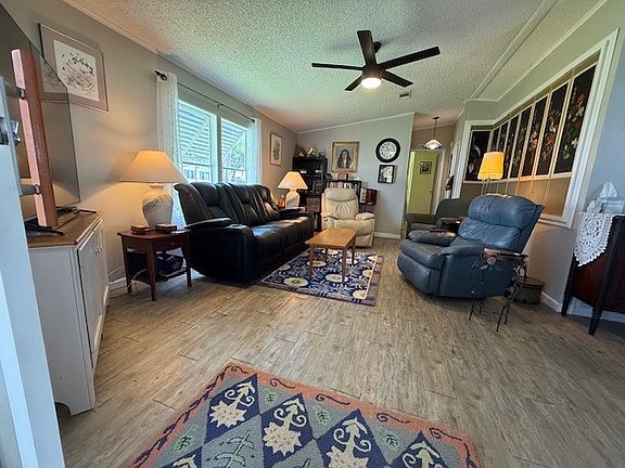 Updated Home in Active 55+ Lakeside CommunityLocated in a vibrant 55+ lakeside community, this beautifully updated home offers comfort, style, and functionality. Both bathrooms feature custom tiled step-in showers, new vanities, and modern color palettes for a fresh, contemporary feel. Attractive laminate flooring flows throughout the home, enhancing its clean and cohesive look.The spacious living room opens seamlessly into a generous dining area, perfect for hosting guests. The kitchen has been tastefully updated with stainless steel appliances, refreshed cabinetry with new hardware, and sleek new countertops.The primary bedroom easily accommodates a large bed and additional furniture, offering plenty of space to relax. Step into the sunroom, enclosed with multi-positional vinyl windows, to enjoy Florida s beautiful weather year-round and take in views of the surrounding garden oasis.A long carport provides ample space for multiple vehicles and doubles as a shaded outdoor patio area. Don t miss the opportunity to enjoy peaceful living with access to great amenities and an active community lifestyle!