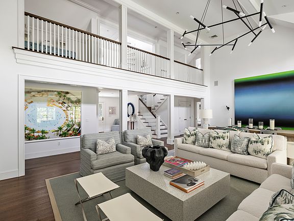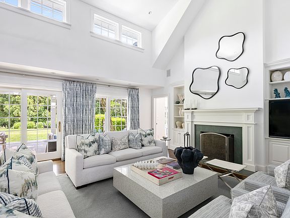 Exquisite Amagansett Traditional, just a stone's throw from Atlantic Beach. Driving up this private flag lot, you are greeted by lush mature landscaping and a quintessential Hamptons cedar shake home. Entering the house through an open foyer, you are immediately struck by the scale and size of the double height great room. With a wall of sliding doors onto the back patio, seamless indoor/outdoor entertaining is a breeze. For those colder fall & winter evenings, the living space offers a wood-burning fireplace flanked by floor to ceiling bookshelves to warm up the space. Chefs will be at home in the kitchen, offering miles of counterspace, ample storage in the beautiful white shaker cabinetry and a full suite of appliances by Subzero, Viking & Bosch, including two dishwashers, a dedicated ice maker and separate beverage refrigerators. There is plenty of space for guests to sit at the island, as well as a dedicated breakfast nook. For those cozy, more intimate nights, the first-floor den is the perfect spot to unwind and watch a movie. On the opposite side of the great room, there are two first-floor guest bedrooms, both with ensuite baths. The sunroom completes this level and leads directly onto the pool deck. Outside, there is no shortage of entertaining spaces - the heated, gunite pool is surrounded by a beautiful slate patio, complete with lounging areas and an outdoor fireplace. Located off the kitchen and living space, the dining terrace offers a full pergola with mature vines that not only offer foliage but provide nice shade. The 1.07-acre lot allows you to have a nicely proportioned grass area for further activities, and yard games. On the second level of the home, the large primary suite offers a covered porch, a 5-piece ensuite bathroom, and a cavernous, windowed walk-in closet. Offering complete privacy for the primary, two guest bedrooms and a shared bathroom are located at the opposite end of the floor. From the second-floor den area, climb the winding stairway to the lookout - enjoy your wrap around roof deck with seasonal ocean views. The finished lower level encompasses two additional bedrooms, two full baths and a large media/rec room. A central laundry/utility room is also located on this level.
