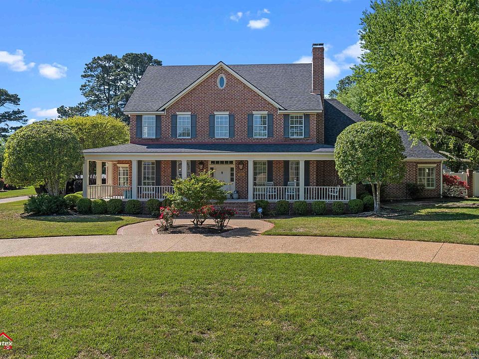 Welcome to your dream home on over an acre in one of the area’s favorite neighborhoods. This updated 4-bed, 3.5-bath beauty offers the perfect mix of charm, space, and smart upgrades. A circle drive and wraparound porch set the stage, and inside you'll find an open layout with room for everything—formal dining, a cozy living area, and a flex space that works great as an office or den. The kitchen is made for gathering, with a Sub-Zero fridge, double ovens, gas range, warming drawer, walk-in pantry, and sunny breakfast nook. The main-floor primary suite is a true retreat with heated floors, a freestanding tub, oversized shower, dual vanities, and double walk-in closets with a center island. Upstairs, three large bedrooms each have double closets and share two full baths. You’ll love the extras: new roof (2023), new carpet, updated lighting and fans, whole-house generator, 72-point security system, and vinyl fencing around the property. The 4-car garage features epoxy floors, new doors, and openers. Out back is your own private escape—heated pool and spa with a new pump, fire pit, outdoor kitchen, and tons of space to relax or entertain. This one checks every box—don’t miss it!