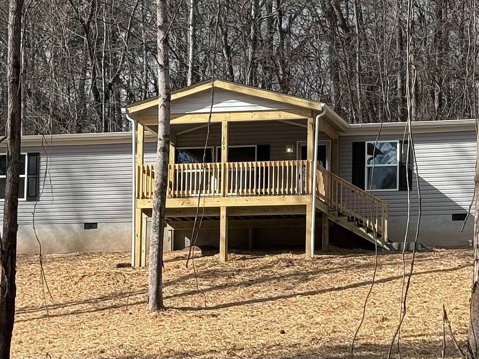 • 12x17 covered front deck with durable Trex flooring for long-lasting, low-maintenance enjoyment