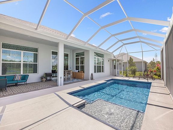 This modern, sophisticated open concept pool home is move in ready! Located in Laurel Reserve & set on half an acre, the property boasts stunning lake views & floods of natural light. Energy efficient construction, impact windows, soaring ceilings, a chef inspired kitchen featuring quartz countertops & soft close cabinetry, custom closets, tray ceilings & tile throughout highlight the caliber of the residence. An oversized 2.5 car garage is perfect for extra storage or a gym. The split floorplan offers privacy for guests, & the large patio and pool are ideal for entertaining! rmszappr&sub2err