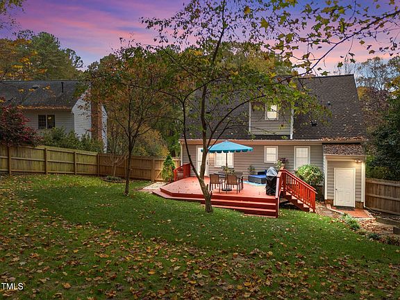Welcome to a meticulously upgraded home that combines modern elegance with timeless charm. Step into the newly renovated (2023) kitchen, a true chef's delight, boasting 42'' cabinets, sleek quartz countertops, and a polished marble backsplash. The kitchen includes a (2024) dishwasher, along with a newer sink, faucet, and range hood (2023), as well as a (2020) refrigerator and 2018 range. Each bathroom has been tastefully remodeled (2023/24), showcasing quartz and marble countertops, textured subway tile showers, and custom closet shelving for added luxury. This residence features a first-floor master suite with a spacious walk-in closet, along with a second master suite upstairs. Gather around the beautifully refaced fireplace with marble ledger stone (2024) or unwind on the newly repainted deck. Enjoy the comfort of new light fixtures, new fans, and new hardwood floors (2024) complemented by recently replaced carpets (2019). Additional perks include marble and quartz surfaces in all bathrooms, double sinks, an office or nursery, double closets, and a well-maintained pull-down attic. The home's exterior shines with a freshly resurfaced and epoxied driveway (2024), energy-efficient front and back doors (2024), and a wood privacy fence (two years old). A 2017 exterior repaint and encapsulated crawlspace reflect the meticulous maintenance. Outside, enjoy a yard filled with blueberry bushes, apple and plum trees, complete with a sizable 10x10 shed (2015) for extra storage. With no HOA, this home is a rare find. Plus, a Simplisafe security system is included, with laundry facilities and washer/dryer that is negotiable. With Greenway access across the street and a short distance to downtown, come discover everything Cary has to offer!
