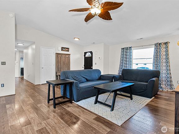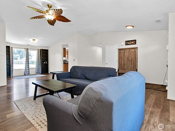 Well-maintained spacious rambler on a large corner lot in the heart of Centralia, close to schools, shopping and I-5! Large front deck for sitting out and enjoying the weather! Enter to the front room which is open to a dining area or can be used as a play area or reading place as it has two shelving units. Kitchen is large with all appliances conveying, a coffee bar and eating bar. Dining area or bonus room with full bath and two bedrooms complete that side of the home. Walk down the hallway to the laundry room to garage, to the primary w/bathroom and full closet! Backyard has fenced garden area, shed and lots of room for entertaining and outdoor activities. This Rambler not to be missed!!