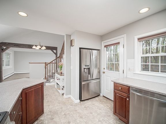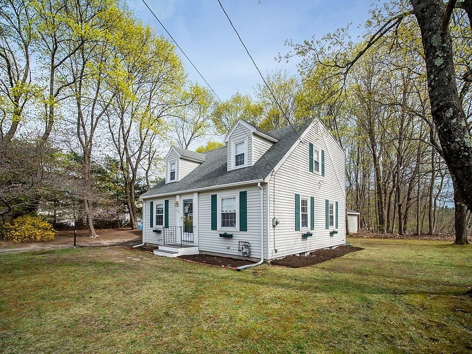 Welcome home to this Contemporary Cape Cod style home with 4 bedrooms & 2 full bathrooms. You will be greeted by a large entry way with cathedral ceiling and custom built stair case. The front to back living room which was just professionally painted, features brand new laminate flooring and a beautiful bay window. The kitchen is centered in the home and has great counter space and upgraded stainless steel appliances. There is direct access from the kitchen to your private brick patio. Two bedrooms feature newly refinished hardwood floors and a dedicated full bathroom. The remaining two bedrooms feature a front-to-back master bedroom, another large bedroom and full bathroom. Additional features include: partially finished basement, a dormered second floor with great head room, replacement windows, 4 zone gas heat, 2 driveways, an oversized custom built shed, generator hk up and large 0.73 acre lot. Close proximity to Center School, restaurants, Bruce Freeman Rail Trail, Rtes 3 & 495